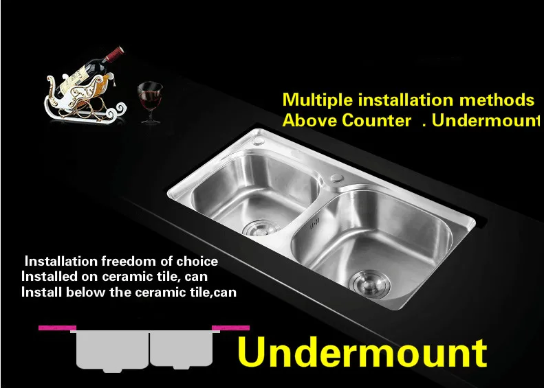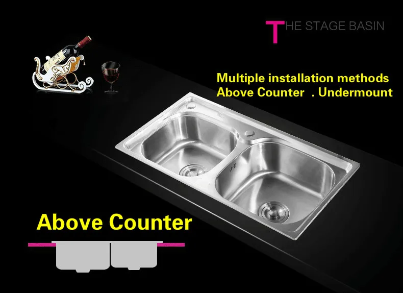 Product Name: Free Shipping Standard Kitchen Sink Big Double Groove Stainless Steel Hot Sell 72x39/75x40/81x43 CM