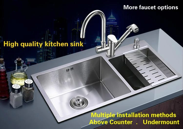 Best . (0% Off) Buy Free Shipping Hand Made Stainless Steel Household Kitchen Sink Big Thickening Double Groove Hot Sell 82x45 CM Price Online.
