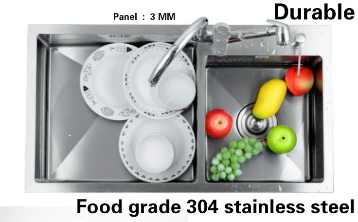 Product Name: Free Shipping Hand Made Stainless Steel Household Kitchen Sink Big Thickening Double Groove Hot Sell 82x45 CM