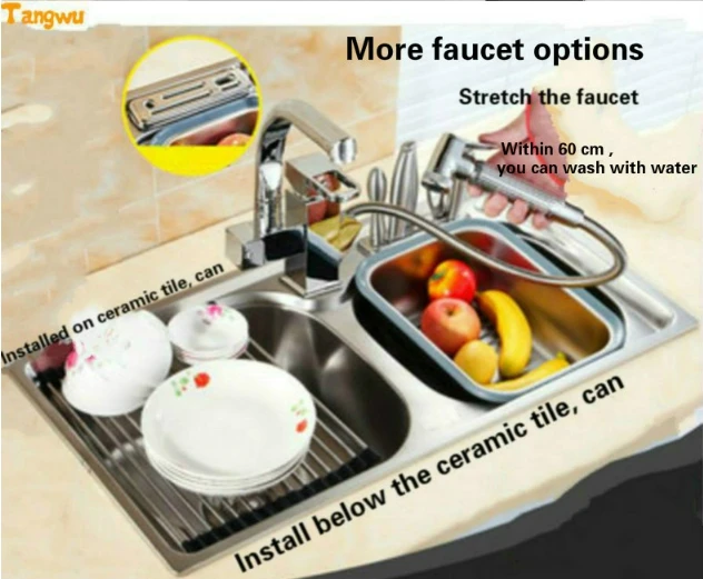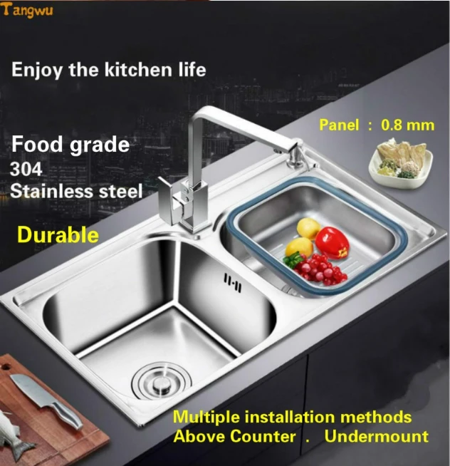 Best . (0% Off) Buy Free Shipping Household Standard Vogue Kitchen Double Groove Sink Wash The Dishes Stainless Steel Hot Sell 71X38/78x42/81x43 CM Price Online.