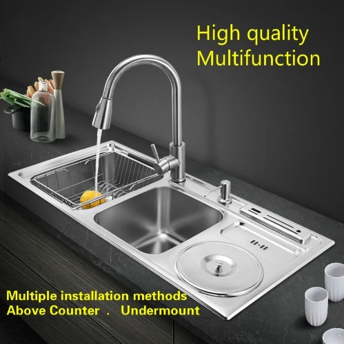 Best . (0% Off) Buy Free Shipping Apartment Big Luxury Kitchen Double Groove Sink Multifunctio Durable 304 Stainless Steel Hot Sell 910x430 MM Price Online.