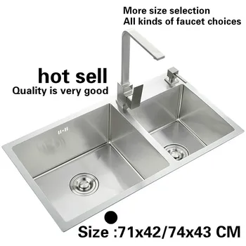 Special Offer Free Shipping Fashion Kitchen Sink Durable 304 Stainless Steel 3 Mm Hand Made Double Groove Hot Sell 71x42 / 74x43 CM Discount 0% Today!
