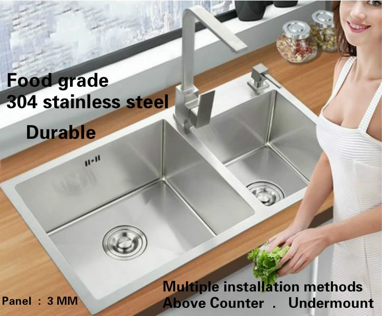Best . (0% Off) Buy Free Shipping Fashion Kitchen Sink Durable 304 Stainless Steel 3 Mm Hand Made Double Groove Hot Sell 71x42 / 74x43 CM Price Online.