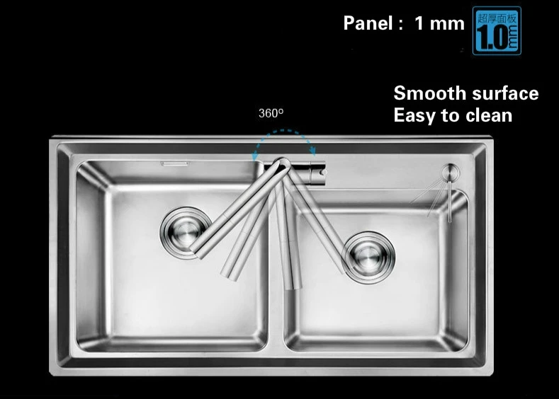 Product Name: Free Shipping Fashion Kitchen Sink Big 0.8 Mm Thick Double Groove 304 Stainless Steel Hot Sell 810x450 MM