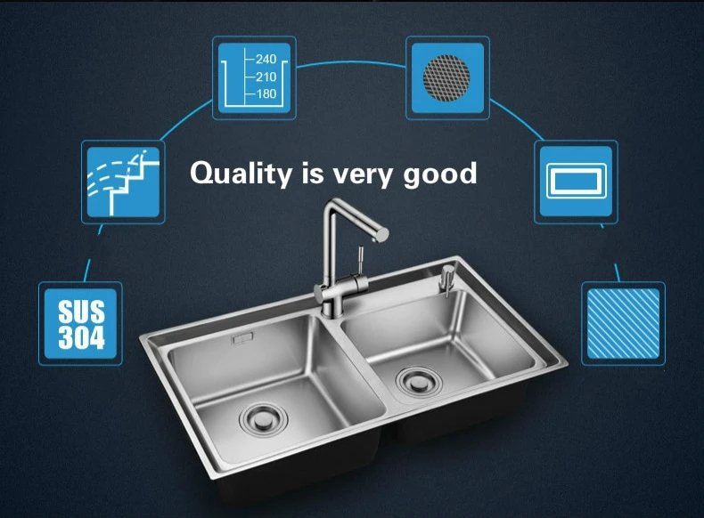 Best . (0% Off) Buy Free Shipping Fashion Kitchen Sink Big 0.8 Mm Thick Double Groove 304 Stainless Steel Hot Sell 810x450 MM Price Online.