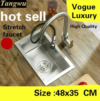 Special Offer Free Shipping Home Luxury Kitchen Manual Sink Single Trough Mini Vogue Stretch Faucet 304 Stainless Steel Hot Sell 480x350 MM Discount 0% Today!