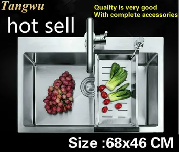 Product Name: Free Shipping Household Fashion Big Kitchen Manual Sink Single Trough Food Grade 304 Stainless Steel Standard Hot Sell 68x46 CM