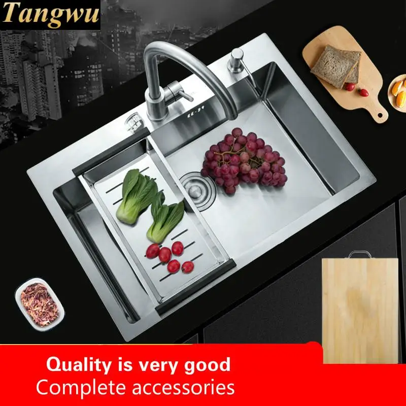 Best . (0% Off) Buy Free Shipping Household Fashion Big Kitchen Manual Sink Single Trough Food Grade 304 Stainless Steel Standard Hot Sell 68x46 CM Cheap Online.
