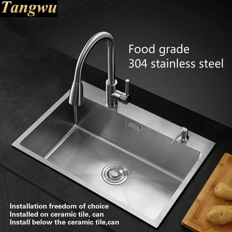 Best . (0% Off) Buy Free Shipping Household Luxury Kitchen Manual Sink Single Trough 304 Stainless Steel Wash The Dishes Big Hot Sell 650x450 MM Cheap Online.