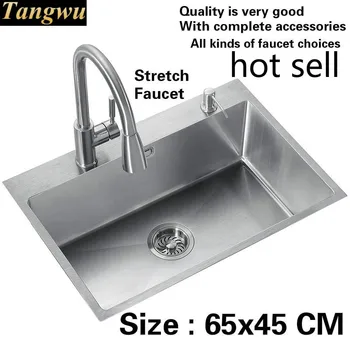 Special Offer Free Shipping Household Luxury Kitchen Manual Sink Single Trough 304 Stainless Steel Wash The Dishes Big Hot Sell 650x450 MM Discount 0% Today!