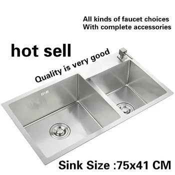 Special Offer Free Shipping Kitchen Sink Durable 304 Stainless Steel 3 Mm Hand Made Double Groove Hot Sell 75x41 CM Discount 0% Today!