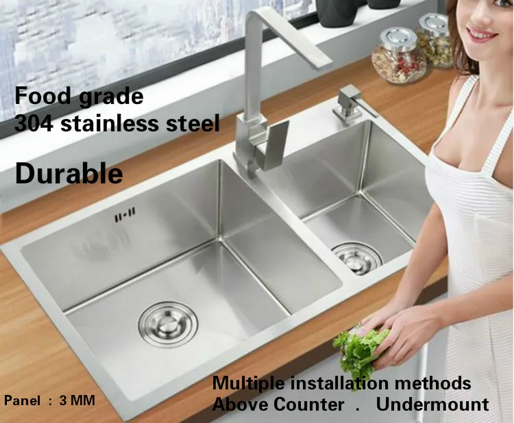 Best . (0% Off) Buy Free Shipping Kitchen Sink Durable 304 Stainless Steel 3 Mm Hand Made Double Groove Hot Sell 75x41 CM Price Online.