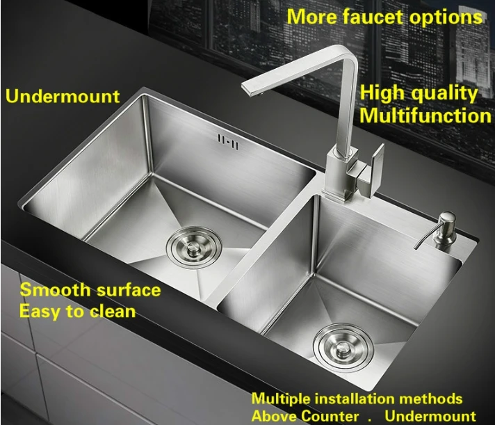 Product Name: Free Shipping Kitchen Sink Durable 304 Stainless Steel 3 Mm Hand Made Double Groove Hot Sell 75x41 CM