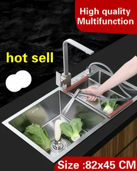 Product Name: Free Shipping Luxury Multifunction Wash Vegetables Kitchen Manual Sink Double Groove 304 Stainless Steel 820x450 MM