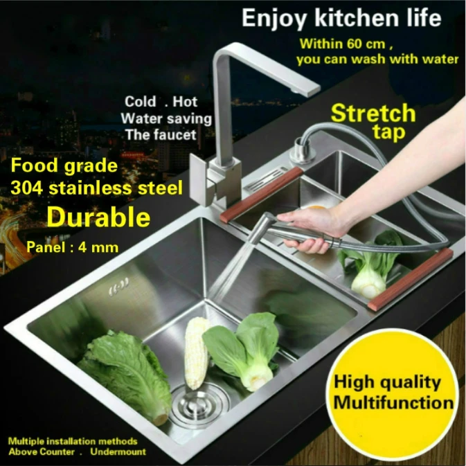 Best . (0% Off) Buy Free Shipping Luxury Multifunction Wash Vegetables Kitchen Manual Sink Double Groove 304 Stainless Steel 820x450 MM Cheap Online.
