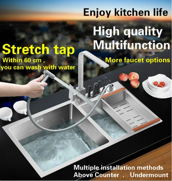 Product Name: Free Shipping Luxury Multifunction Wash Vegetables Wogue Kitchen Manual Sink Double Groove 304 Stainless Steel 800x450 MM