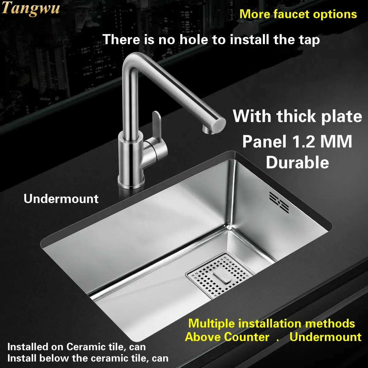 Product Name: Tangwu Fashionable Apartment High-grade Kitchen Sink 304 Stainless Steel Thick Manual Small Single Slot 430x260x210 MM