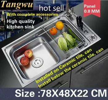 Special Offer Tangwu High-end Multi-functional Kitchen Sink Food-grade Stainless Steel 0.8 MM Thick Dishwashing Large Single Slot 78X48X22 CM Discount 0% Today!