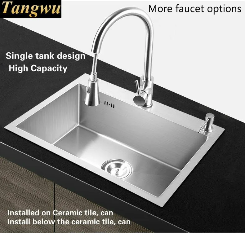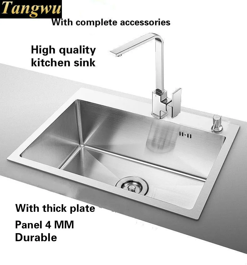Product Name: Tangwu High-grade Food Grade 304 Stainless Steel Kitchen Sink With Single-tank 4 MM Thick And Durable 55X43/60X45X22 CM