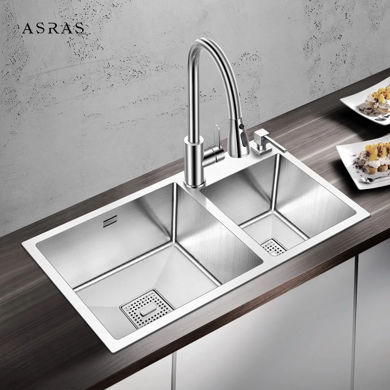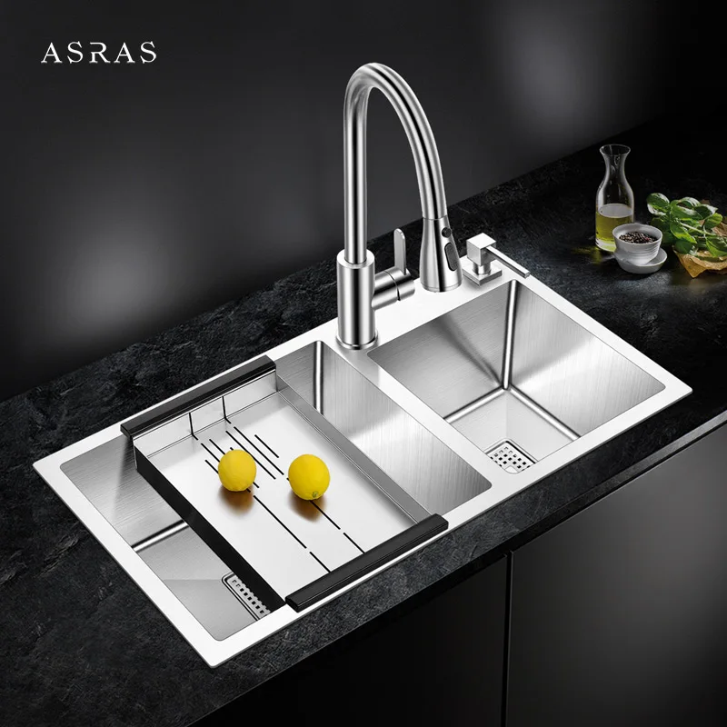 Product Name: ASRAS 7843A Kitchen Sink Double Bowl Above Counter Or Udermount Sinks 304 Stainless Steel 1.2mm Thickness Sink Kitchen