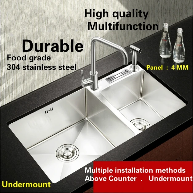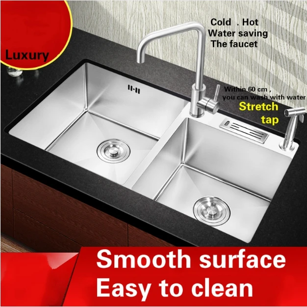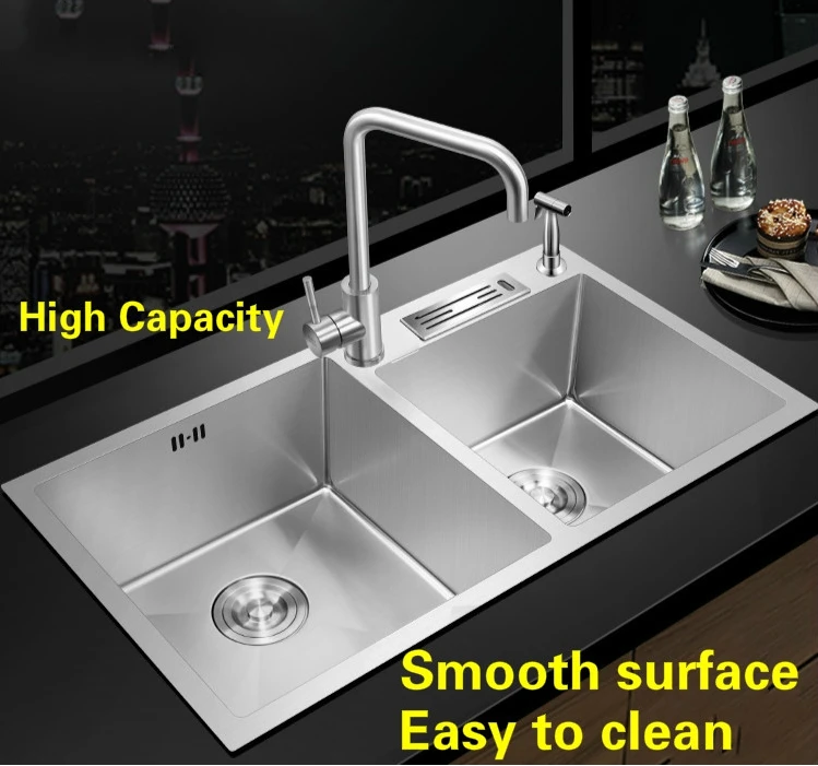 Best . (0% Off) Buy Free Shipping Apartment Big High Quality Kitchen Manual Sink Double Groove Do The Dishes 304 Stainless Steel Hot Sell 780x450 MM Cheap Online.