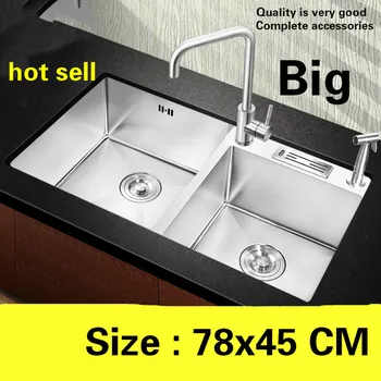 Product Name: Free Shipping Apartment Big High Quality Kitchen Manual Sink Double Groove Do The Dishes 304 Stainless Steel Hot Sell 780x450 MM