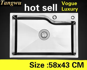 Product Name: Free Shipping Apartment Kitchen Manual Sink Single Trough Vogue Wash Vegetables 304 Stainless Steel Luxury Hot Sell 58x43 CM