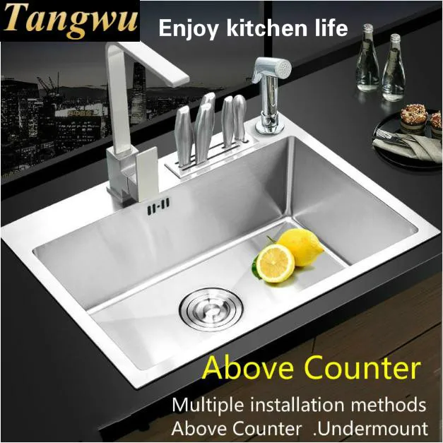Best . (0% Off) Buy Free Shipping Apartment Luxury Kitchen Manual Sink Single Trough Do The Dishes 304 Stainless Steel Hot Sell 50x45/60x46 CM Cheap Online.