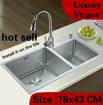 Special Offer Free Shipping Apartment Vogue Kitchen Manual Sink Double Groove High Capacity Wash Vegetables 304 Stainless Steel 78x43 CM Discount 0% Today!