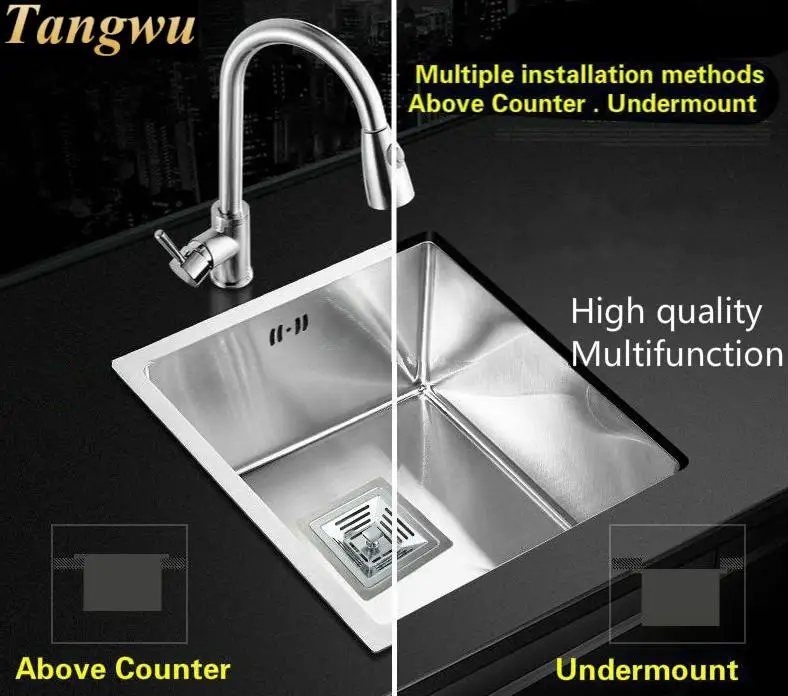 Best . (0% Off) Buy Free Shipping Home Balcony Vogue Do The Dishes Kitchen Manual Sink Single Trough 304 Stainless Steel 430x460 MM Price Online.