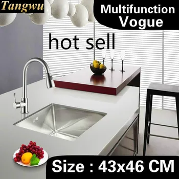 Product Name: Free Shipping Home Balcony Vogue Do The Dishes Kitchen Manual Sink Single Trough 304 Stainless Steel 430x460 MM