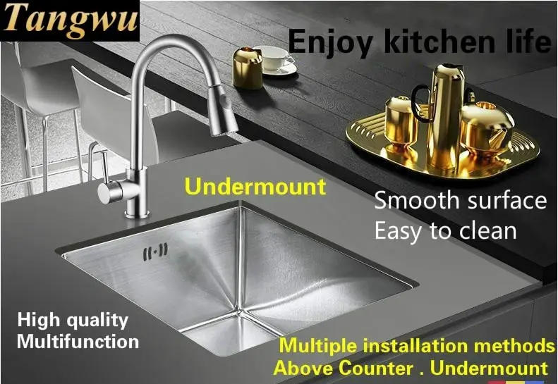 Best . (0% Off) Buy Free Shipping Home Balcony Vogue Stretch Faucet Do The Dishes Kitchen Manual Sink Single Trough 304 Stainless Steel 430x460 MM Cheap Online.