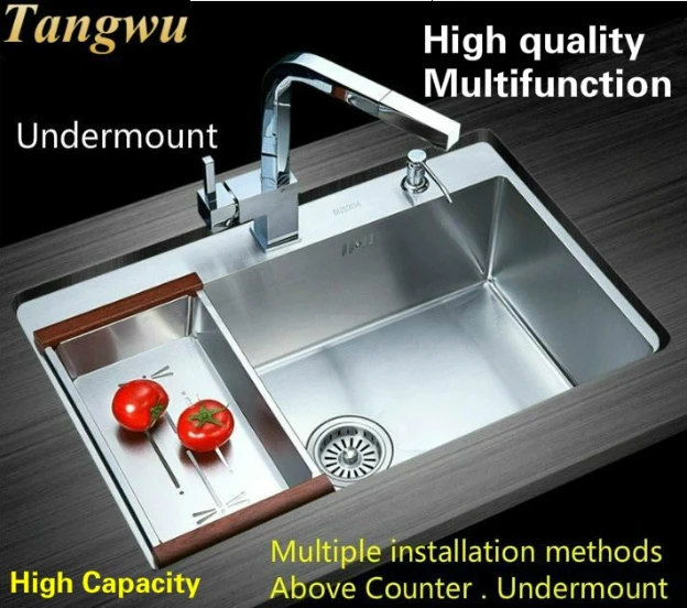Best . (0% Off) Buy Free Shipping Home Kitchen Manual Sink Single Trough Standard 4 Mm 304 Stainless Steel Big Hot Sell 68x46 CM Cheap Online.