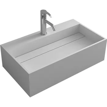 Product Name: Rectangular CUBE 70cm Wall Hung/Counter Top Washbasin Stone Solid Surface Cloakroom Vessel Sink RS38439