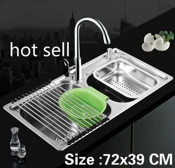Product Name: Free Shipping Apartment Vogue Kitchen Double Groove Sink 304 Stainless Steel Do The Dishes Hot Sell Standard 720X390 MM