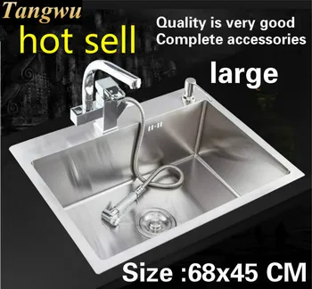Product Name: Free Shipping Apartment Multifunction Large Kitchen Manual Sink Single Trough 304 Stainless Steel Hot Sell 68x45 CM