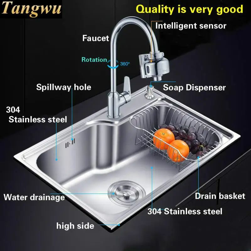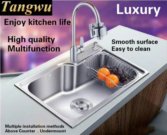 Best . (0% Off) Buy Free Shipping Fashion Kitchen Sink 0.8 Mm Thick Luxurious Food Grade 304 Stainless Steel Single Slot Hot Sell 580x430/680x440 MM Price Online.