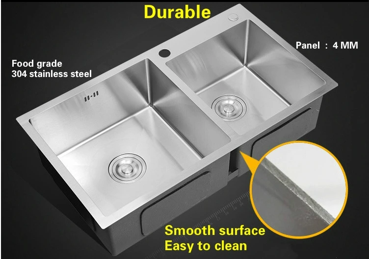 Product Name: Free Shipping Standard Kitchen Sink Durable Manual 3 Mm Thick Food Grade 304 Stainless Steel Vogue Double Groove 72x40 CM
