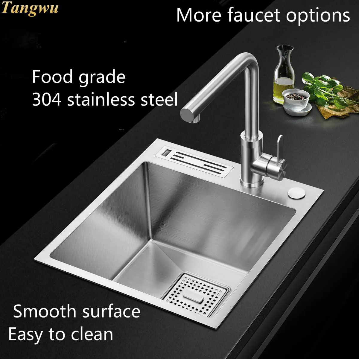 Product Name: Free Shipping Standard Household Kitchen Manual Sink Single Trough Small Durable 304 Stainless Steel Hot Sell 400x450 MM