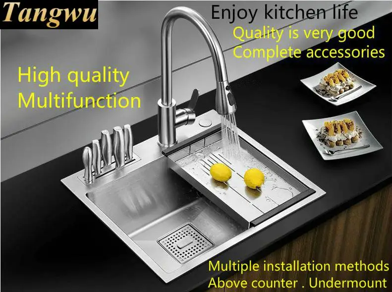 Best . (0% Off) Buy Free Shipping Standard Household Kitchen Manual Sink Single Trough Small Durable 304 Stainless Steel Hot Sell 400x450 MM Cheap Online.