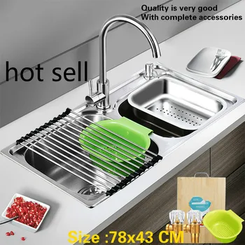 Product Name: Free Shipping Household Standard Kitchen Double Groove Sink Wash The Dishes 304 Food Grade Stainless Steel Hot Sell 78x43 CM