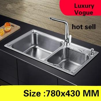 Product Name: Free Shipping Luxury Standard High Capacity Wash Vegetables Big Kitchen Double Groove Sink 304 Stainless Steel 78x43 CM