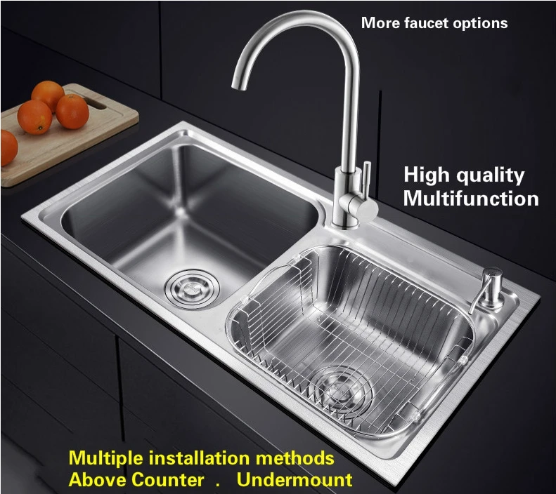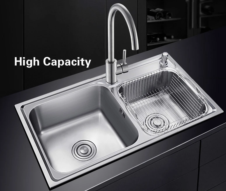 Best . (0% Off) Buy Free Shipping Luxury Standard High Capacity Wash Vegetables Big Kitchen Double Groove Sink 304 Stainless Steel 78x43 CM Price Online.